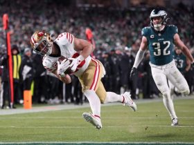 The fifth-year wide receiver has 210 receptions, 2,581 receiving yards and 22 touchdowns in his career. He was the 49ers’ leading wide receiver this season and led the team with nine touchdown receptions. Jennings also had a passing touchdown in the 2023 playoffs.
