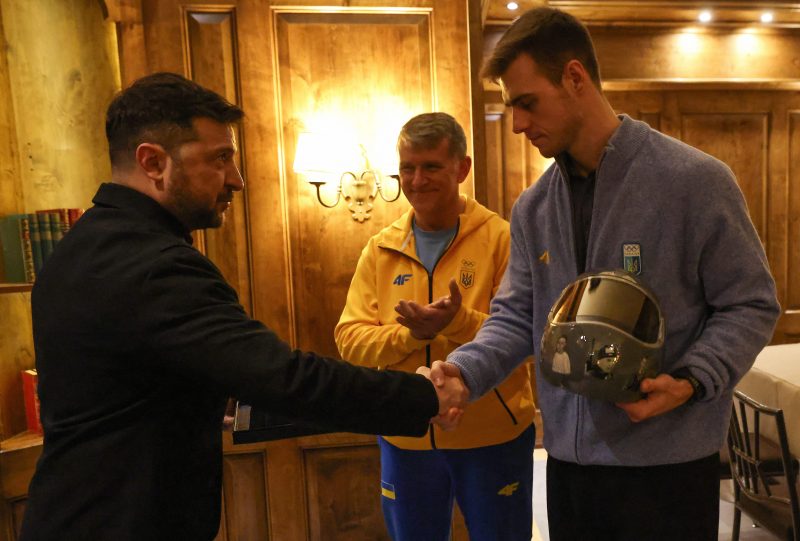 Ukraine president Volodymyr Zelenskyy presented Vladyslav Heraskevych with the honor during a meeting in Munich, Germany, on Friday, Feb. 13, hours after the Court of Arbitration for Sport denied the athlete’s appeal of his disqualification. CAS said that while it sympathized with Heraskevych’s wish to memorialize athletes killed in Russia’s unprovoked war on Ukraine, the helmet was a violation of the International Olympic Committee’s ban on political statements on the field of play.