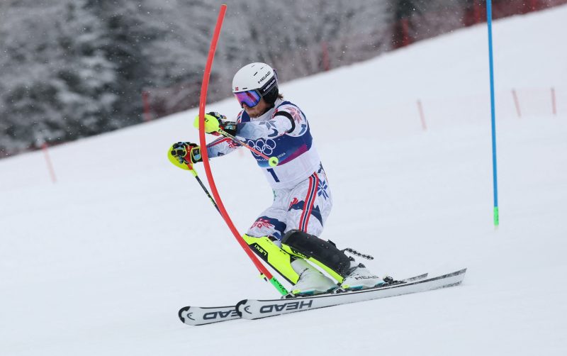 Atle Lie McGrath, a ski racer who was born in Vermont and competes for Norway, had a lead of 0.59 seconds in the men’s slalom before he began his second and final run in the Alpine skiing event.